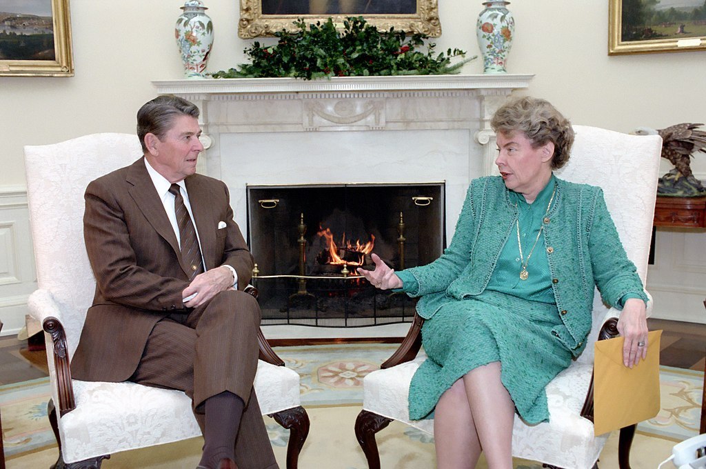 Fu l’ascesa di Ronald Reagan (1911-2004) a offrire alla schiera neoconservatrice, decisa a sostenere con qualsiasi mezzo la crociata antisovietica intrapresa dall’ex governatore della California, la ghiotta opportunità di realizzare il proprio programma politico. Alquanto significativo risultò essere il contributo offerto dalla politologa Jeane Kirkpatrick (1926-2006), ambasciatrice alle Nazioni Unite dal 1981 al 1985 e autrice, nel novembre del ’79, di un saggio intitolato “Dictatorships and Double Standards“: muovendo dalla consueta distinzione fra regimi autoritari e totalitari, l’allora docente presso l’Università di Georgetown si era dichiarata favorevole a una liberalizzazione dei primi perché suscettibili di evolversi in senso democratico, purché la loro esistenza non fosse minacciata dalle manovre destabilizzanti dei comunisti. È in quest’ottica che occorre dunque interpretare le accuse rivolte all’amministrazione Carter, colpevole di aver lasciato Paesi come l’Iran e il Nicaragua al proprio destino, nonché di essere ricorsa al proverbiale “doppio standard” a seconda dei contesti e delle esigenze del momento: