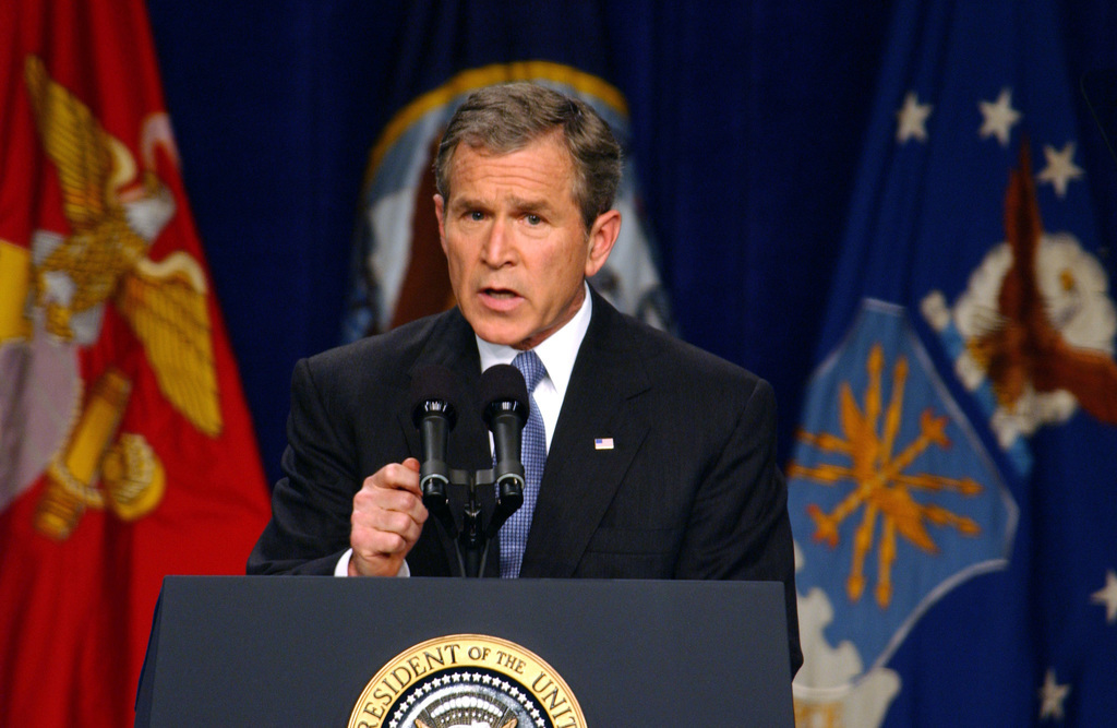 Io l’ho supportato, gli ho dato ragione. Inviammo una lettera, credo un paio di settimane prima del discorso, esortando il Presidente a fare questa mossa. Ma si è trattato di una cosa piuttosto coraggiosa, per lui: è stato a malapena quattro mesi dopo l’11 settembre. È stata una mossa piuttosto rapida – da uno sforzo ristretto a uno più ampio».