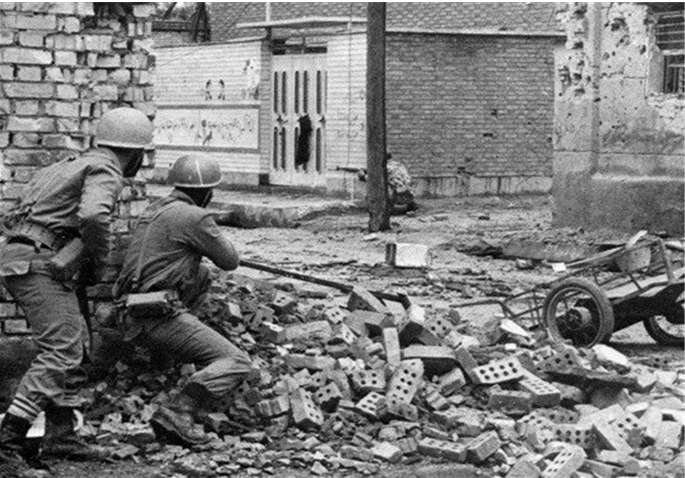 Tra l’81 e l’82 si assistette quindi alla lenta evacuazione dei territori occupati da Baghdad, indebolita dalle sconfitte patite sul campo e dalla decapitazione dei vertici militari ordinata da Saddam[2], seguita dalla richiesta infruttuosa di intavolare le trattative per un ritorno allo status quo ante-bellum. Il rifiuto opposto in tal senso da Khomeini era infatti dettato dalla convinzione di essere ormai prossimo alla vittoria, e di poter dunque esportare la propria rivoluzione rovesciando il Partito Ba’ath.