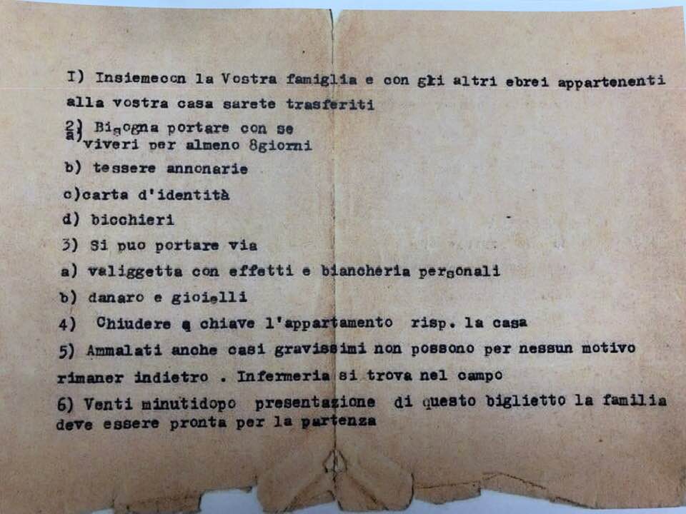 Le S.S. entrarono di casa in casa sfondando porte, spesso arrestando intere famiglie sorprese ancora nel sonno. Nella maggior parte dei casi diedero ai malcapitati 20 minuti di tempo per raccogliere le loro cose (v. copia).