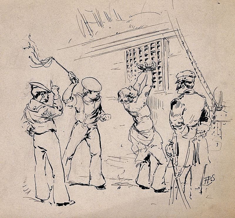 A completare un simile scenario contribuivano i maltrattamenti e i castighi cui era sottoposto l’equipaggio. Il regolamento dell’Ammiragliato e le leggi di guerra prevedevano dure punizioni, la cui applicazione era lasciata alla volontà del comandante della nave. Ma non tutti questi capitani erano dei torturatori: molti erano ragionevoli pur sapendo di avere a che fare con gente proveniente dalle galere, analfabeti e sprovveduti. L’efferatezza di alcuni comandanti poteva rendere la vita difficile all’equipaggio e anche agli ufficiali. Bligh, il famigerato comandante del Bounty, era uno di questi. È interessante notare come, dopo l’ammutinamento (1789) della nave al suo comando[6], l’impiccagione di alcuni degli ammutinati e altri comportamenti sediziosi[7], l’Ammiragliato abbia mitigato leggermente le punizioni previste (1799).
