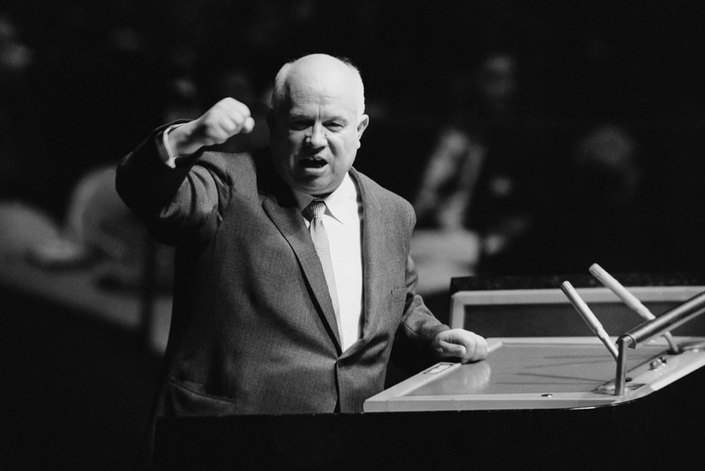 Nikita Sergeevič Chruščëv (1894-1971), già commissario politico durante la sanguinosa battaglia di Stalingrado (23 agosto 1942 -2 febbraio 1943), assume formalmente la direzione del Partito Comunista dell’Unione Sovietica (PCUS).