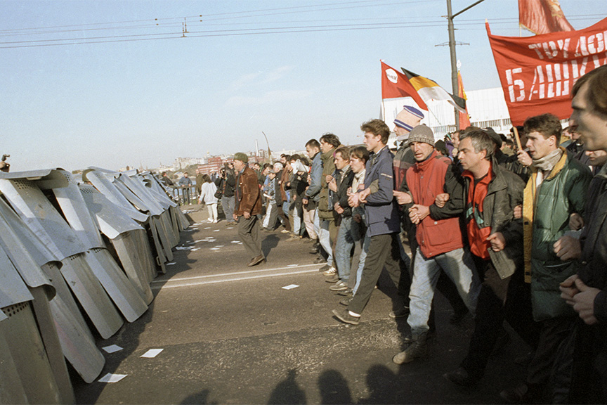 [5] Su istigazione di Ruckoj, i manifestanti filo-parlamentari occuparono l’ufficio del sindaco per poi dirigersi verso la torre televisiva di Ostankino, dove trovarono ad attenderli le unità lealiste. Nel frattempo, diversi gruppi paramilitari antigovernativi erano riusciti a infiltrarsi nel Soviet Supremo.