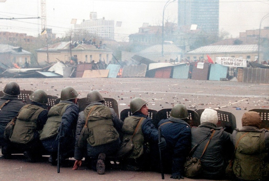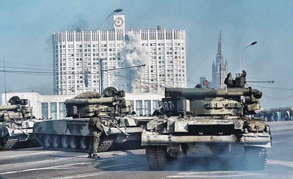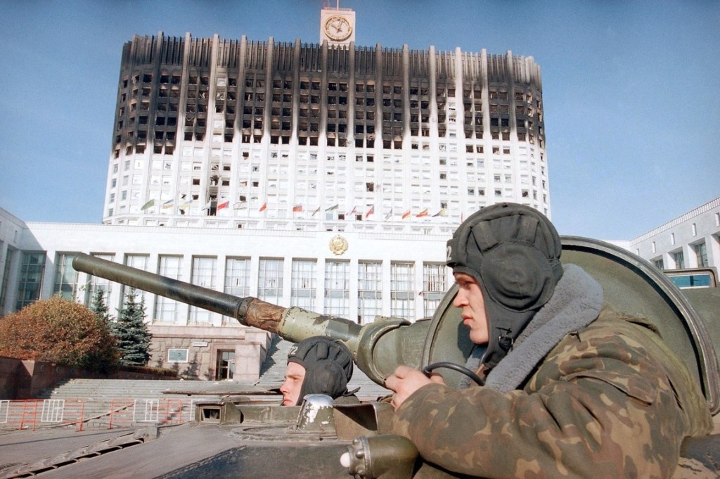 L’esistenza di un conflitto tra l’attività di governo e le prerogative parlamentari avrebbe spinto il Capo di Stato a riunire, nell’estate del 1993, un’assemblea speciale che redigesse il testo della nuova Costituzione, manifestando al contempo la volontà di anticipare la tornata elettorale. Il 21 settembre venne perciò firmato il decreto per lo scioglimento degli organi superiore e legislativo, disposizione alla quale quest’ultimo avrebbe reagito non solo dichiarando El’cin decaduto, ma designando al suo posto l’allora vicepresidente Aleksandr Ruckoj (1947-vivente). Messo davanti al rifiuto di evacuare la “Casa Bianca”, il leader del Cremlino avrebbe quindi approfittato degli assalti al municipio e alla stazione televisiva[5] per avallare, nella giornata del 4 ottobre, l’intervento dei reparti speciali che avevano già circondato l’edificio.